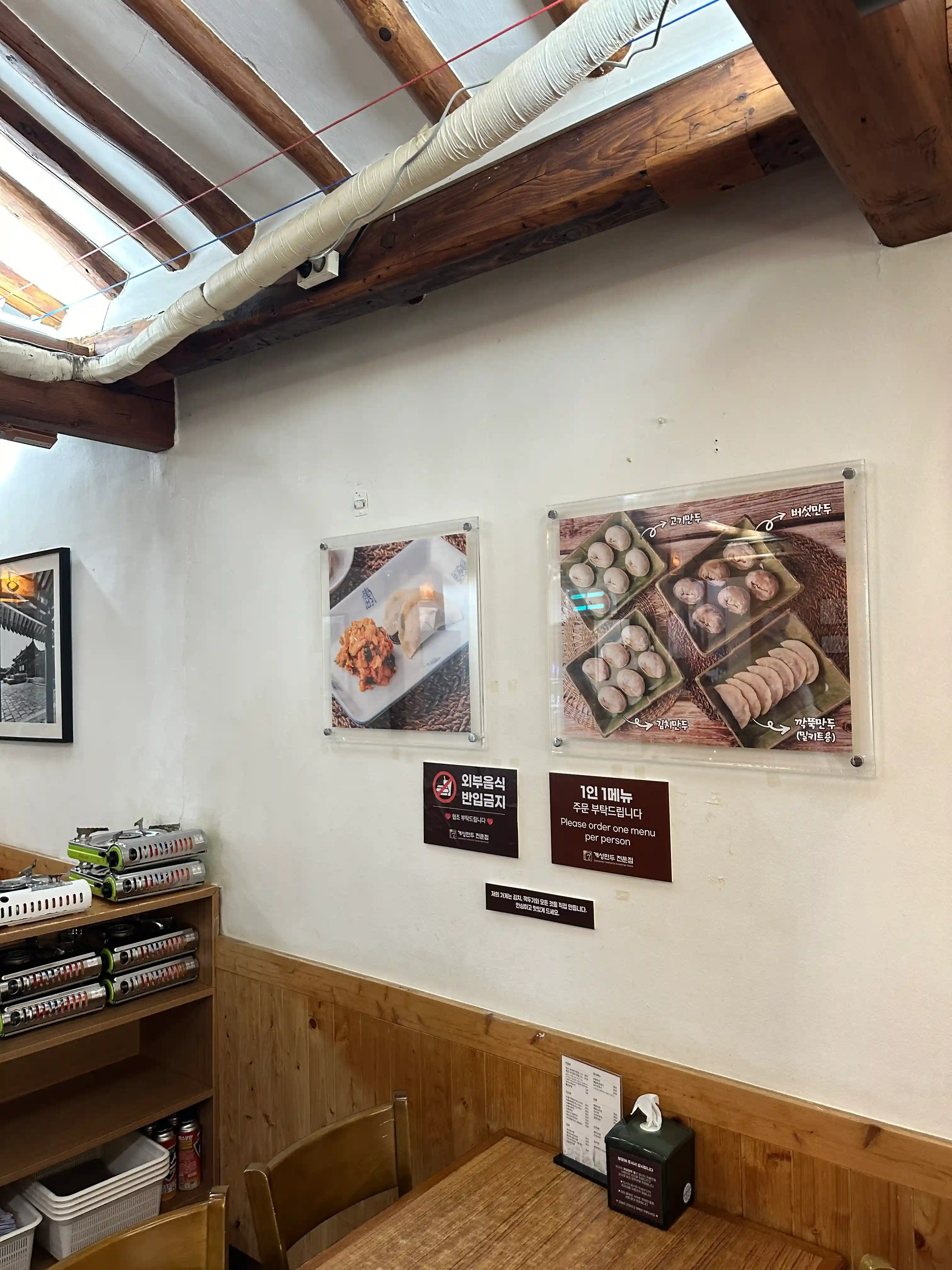 穿过小巷,就能看到开城饺子宫。我之前从来没有吃过开城饺子,所以对我来说没有参考标准。不过,同行的朋友说,他妈妈是开城人,亲自吃过正宗的开城饺子,并表示这家店的味道最接近开城。他简直是活生生的 “证人”,多亏了他,我也尝到了开城饺子的味道。